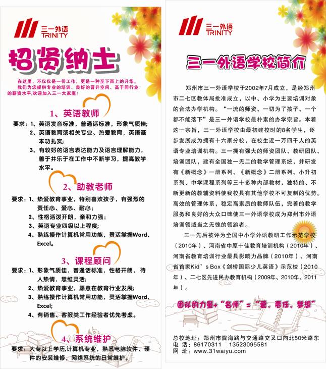 1、本次招聘的主要是英语教师,除了海报中对英语教师的要求外,本次招聘以男生为主。