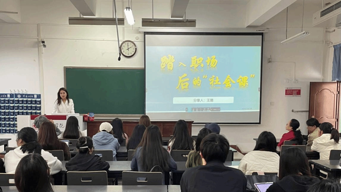 会上,王璐结合自身在党政机关及国际中文教育志愿者从教的经历,向在场师生分享了踏入职场后三点感悟。一是要学会换位思考,尽快实现角色转换。踏入职场后,意味着要承担相应的责任,要学会站在同事及团队的角度去思考,积极主动掌握必要的工作技能和知识,以成熟的心态和专业的态度履行工作职责,完成工作任务。二是善于把握机会,敢于接受挑战,不断超越自我。日常工作中总会面临很多的“第一次”,要大胆尝试,将之作为自我发展和完善的沉淀,“没有白走的路,你所有的尝试,都会让未来的你闪闪发光”。三是勇敢面对挫折,保持强大内心。提醒同学们在学习和工作中,困难和挫折总会不期而遇,要保持积极乐观的心态,善于吸取教训,总结经验,这样才能在职业道路上行稳致远。