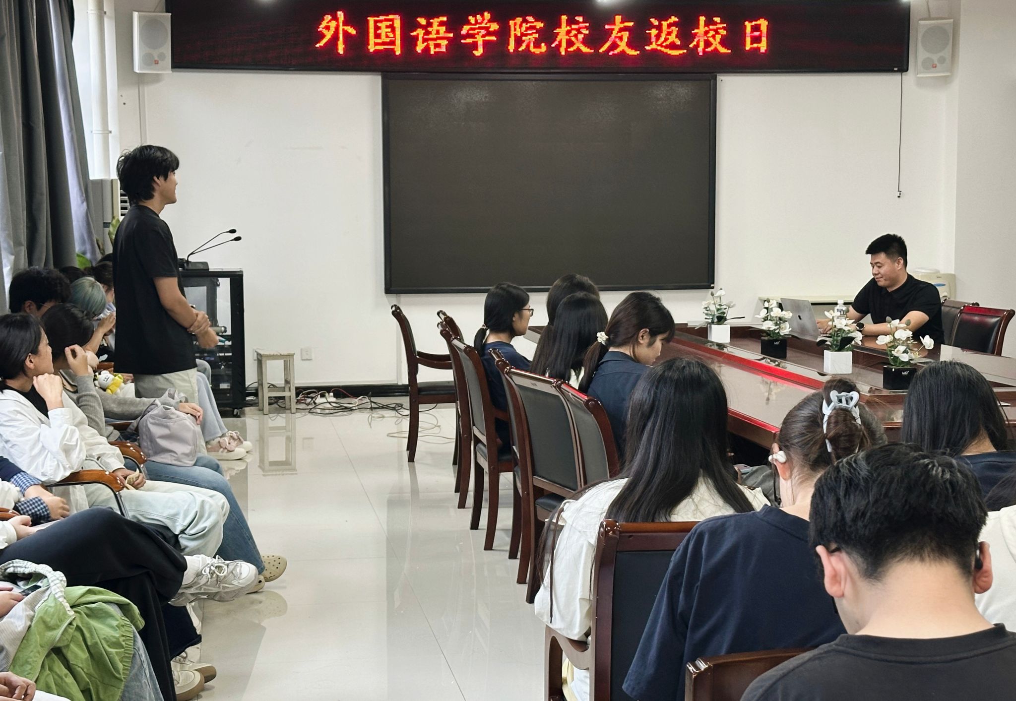 9月26日,365在线体育投注官网英语专业2015届毕业生、河南赤华传媒有限公司经理祁守锁重返母校,举办了一场别开生面的创业经验分享会。