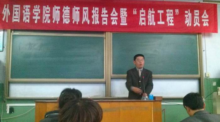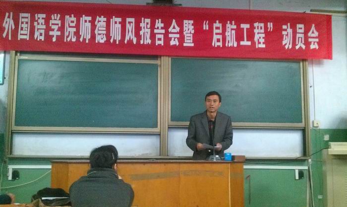 2012年10月26日下午,365在线体育投注官网召开师德师风报告会暨“启航工程”动员会,365在线体育投注官网全体教师共同学习了公司《教师课堂教学行为规范》和《教学事故认定及处理办法》。校师德师风报告团成员董学武教授为全体教师做了《师德的内涵和修养》的专题报告。董教授结合自己的生活和求学经历,论证了师德就是爱教育、爱员工的深刻内涵,师德修养就是师德认知和师德养成两部曲的实践总结。
