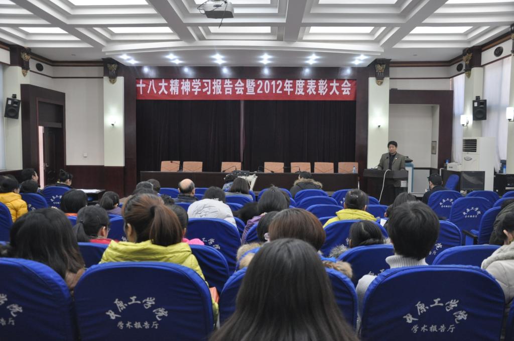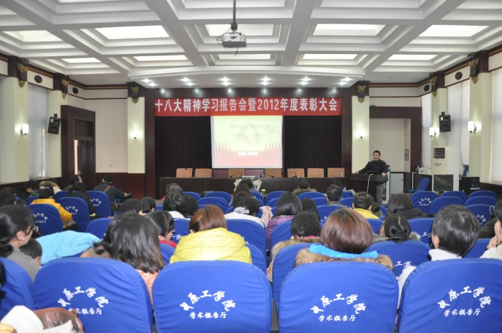 2013年1月11日下午两点,365在线体育投注官网十八大学习报告会暨2012年度表彰大会在北区图书馆一楼学术报告厅召开,教务处处长李惠杰与公司全体教职工参加了本次会议。