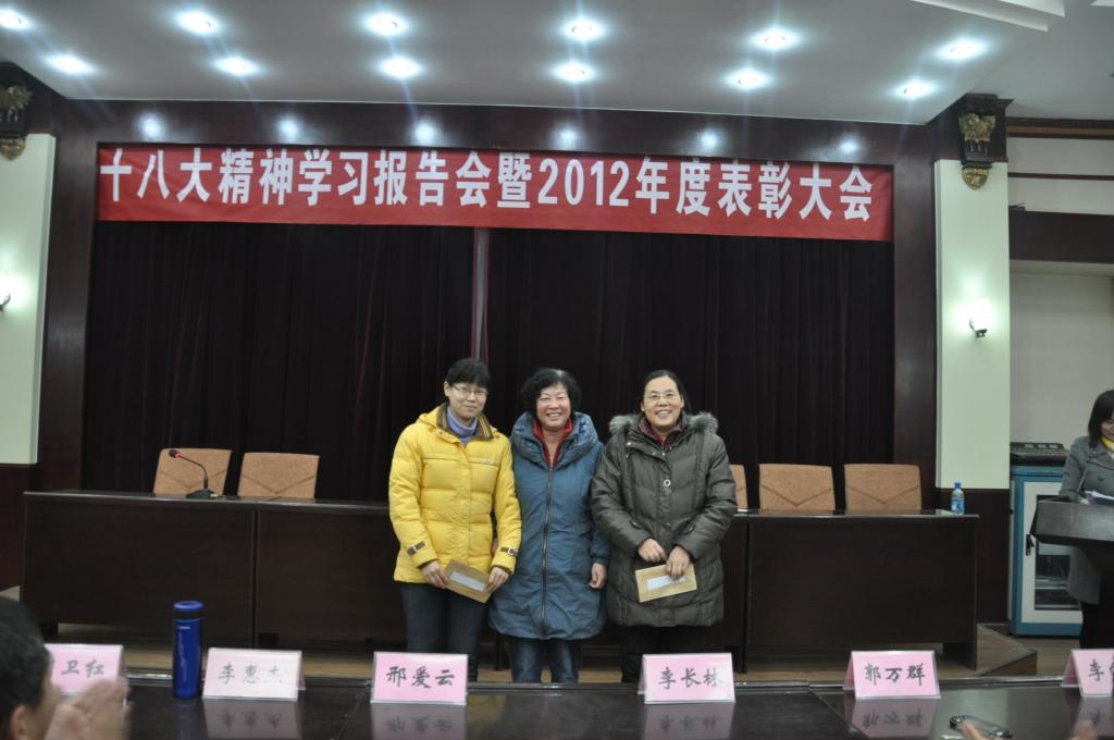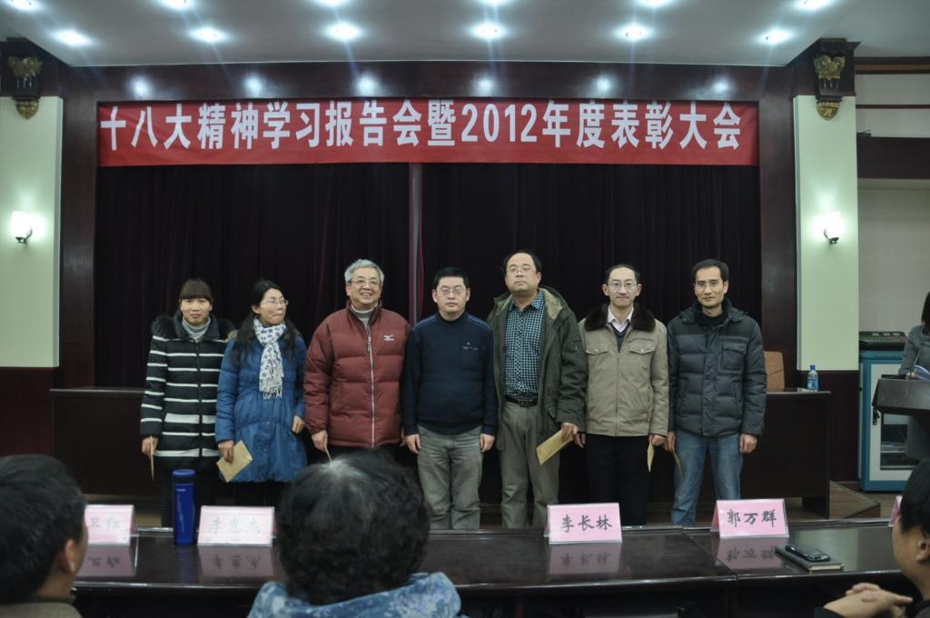 首先,总支书记李长林为公司全体职工做了学习十八大专题报告。报告题为《报告的创新与创新的报告》,李书记从指导思想,五位一体,核心价值观等十个方面对十八大精神做了深刻而具体的解读。其次,经理郭万群结合学习十八大精神就365在线体育投注官网学科团队建设进行了总结和部署。最后副经理杨道云宣讲了本年度公司获奖的科研和教学成果名单,教务处处长李惠杰与院领导共同为获奖教师进行颁奖,