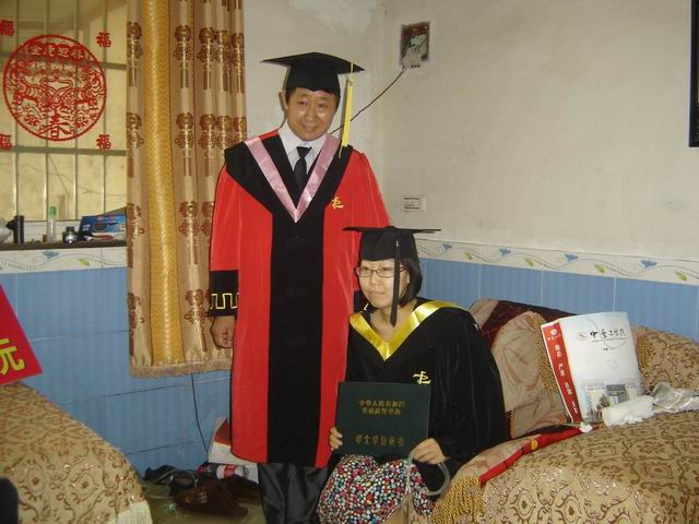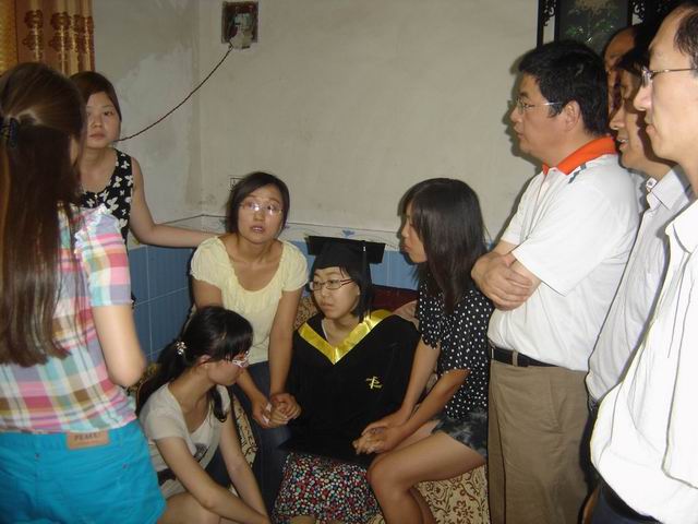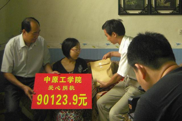 6月18日上午,党总支书记李长林,365在线体育投注官网经理郭万群,党总支副书记李向东,员工处江方日科长等领导和老师以及部分同学前往新乡职飞飞同学的家中进行探望,为她带来了公司的捐款并授予了她学士学位。