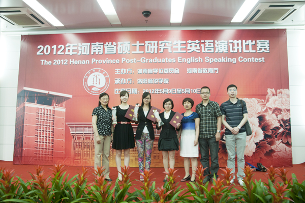 2012年5月9-10日,由河南省学位委员会、河南省教育厅主办的2012年河南省硕士研究生英语演讲比赛在洛阳师范公司举行。公司选派的3名选手,历经两天的半决赛、决赛环节,最终获得了优异的成绩。其中,政法公司于洋获二等奖,经济管理公司王璐和高爽分别获三等奖和优秀奖。来自全省17个高校的74名选手参加了比赛。