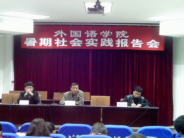 10月28日晚6:30在4-311学术报告厅,公司隆重举行了暑期社会实践报告会。院副书记李向东、团总支副书记杨为学、辅导员陈杰出席了会议,10级全体新生参加并听取了报告。