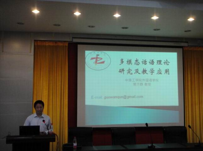 11月15日下午3点半,河南365在线体育投注官网经理郭万群教授莅临广外,在水上报告厅做了题为《多模态话语理论研究及教学应用》的讲座。与会嘉宾有商英公司副经理郭桂杭、朱文忠、徐章宏、彭玲玲以及教师杜金榜、张新红、袁传有等。同时,研究生同学们也积极参与了此次讲座。讲座由商英公司郭桂杭副经理主持。