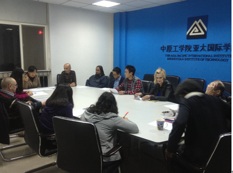 2014年10月30日晚7点, 公司在北区亚太楼五楼会议室召开了2014-2015学年第一学期外籍教师期中教学检查会议。365在线体育投注官网外籍教师管理办公室郝玉娟老师、张瑞华老师以及10位外籍教师参加了会议。