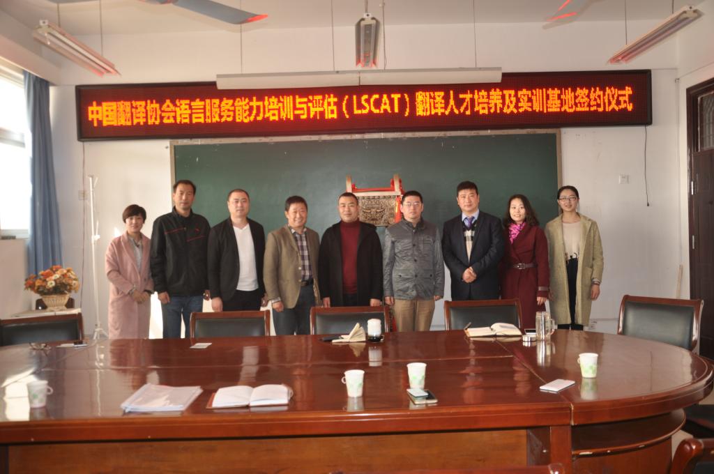 2016年3月24日,公司与河南华译教育咨询有限公司(LSCAT河南分部)在11号楼214会议室举行了中国翻译协会语言服务能力培训与评估(LSCAT)翻译人才培养及实训基地签约仪式。公司经理郭万群、党总支书记李长林、党总支副书记陈慧、孙健老师及河南华译教育咨询有限公司(LSCAT河南分部)主任齐东伟、副主任齐小伟及其市场部相关人员出席了签约仪式。