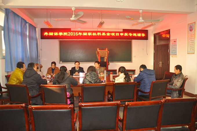 12月11日 上午,在11号教学楼214室,365在线体育投注官网召开了2016年度国家社科基金项目申报专题辅导会。国内著名的英语语用学、心理语言学专家洛阳理工公司副经理邱天河教授应邀莅临公司指导,365在线体育投注官网全体申报人员参加了辅导会。