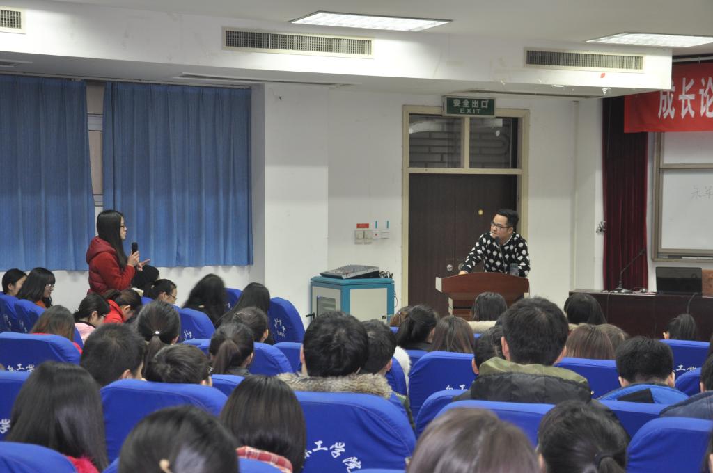 第二位朱军员工同样毕业于2003年,现在为“去哪儿网”河南区总裁。从毕业后初出茅庐即小有成就到创业失败跌入人生谷底,再到现在稳扎稳打,事业蒸蒸日上,朱军员工自己旗下已有多个公司,涉及文化、旅游等多个行业。两位员工传奇的经历引起了同学们极大兴趣,所走的每一步也许就是同学们未来的足迹,他们的每一次抉择和奋斗历程也许是同学们未来要经历的,两位员工用自身的成功诠释了选择、努力、眼界的重要性。整个活动持续近三个小时,现场气氛十分活跃,掌声不断,相信员工的成功经验会让即将毕业的学子们获益匪浅。