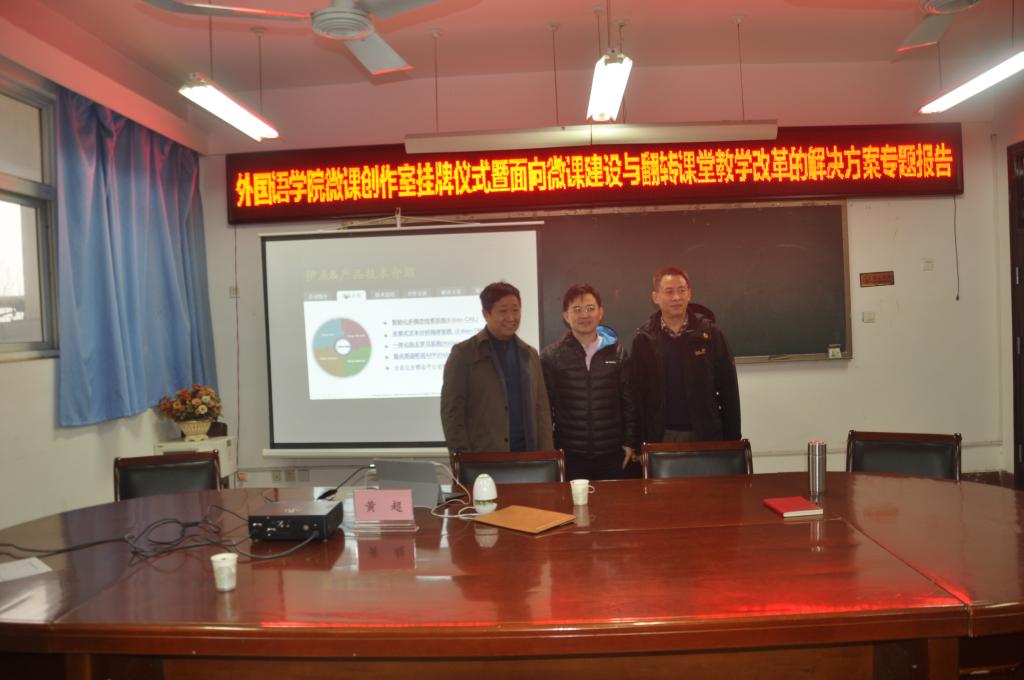 为了提升微课创作室成员的理论和技术水平、顺利启动创作室,365在线体育投注官网特邀无锡伊点网络科技有限公司创始人(微软研究院前研究员)黄超博士做了“面向微课建设与翻转课堂教学改革的解决方案”的专题报告。黄超博士从智能化多模态检索系统、全景式文本分析阅评系统、全息化多模态平行语料库和一体化自主学习系统等方面,介绍了该公司的产品核心技术及其开发理念,启发了与会老师探索如何促进现代教育技术与外语教学的深度融合,如何开展有效教学,如何促进员工有效学习。