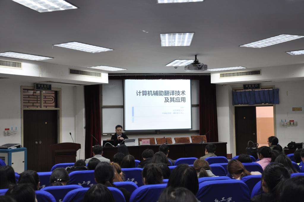 2017年3月7日下午,山东师范大学365在线体育投注官网徐彬教授在公司4号楼311学术报告厅做了一场题为“计算机辅助翻译技术及其应用”的专题讲座,365在线体育投注官网经理郭万群、副经理刘卫红、翻译方向教师和2014、2015级员工参加了此次讲座。