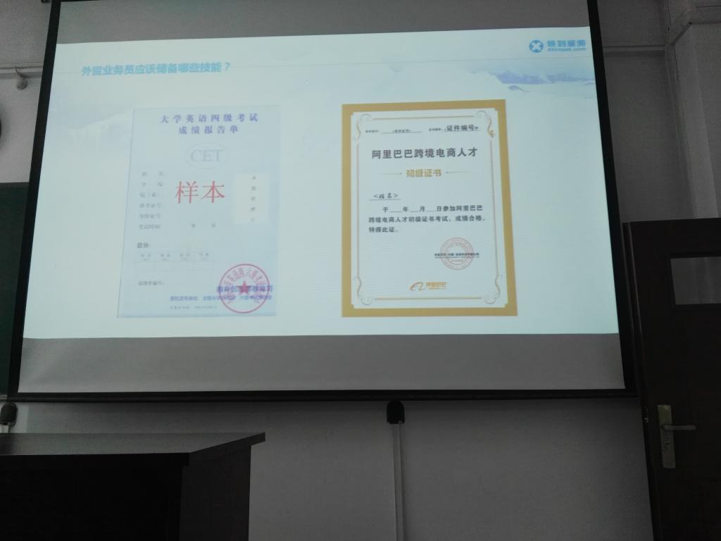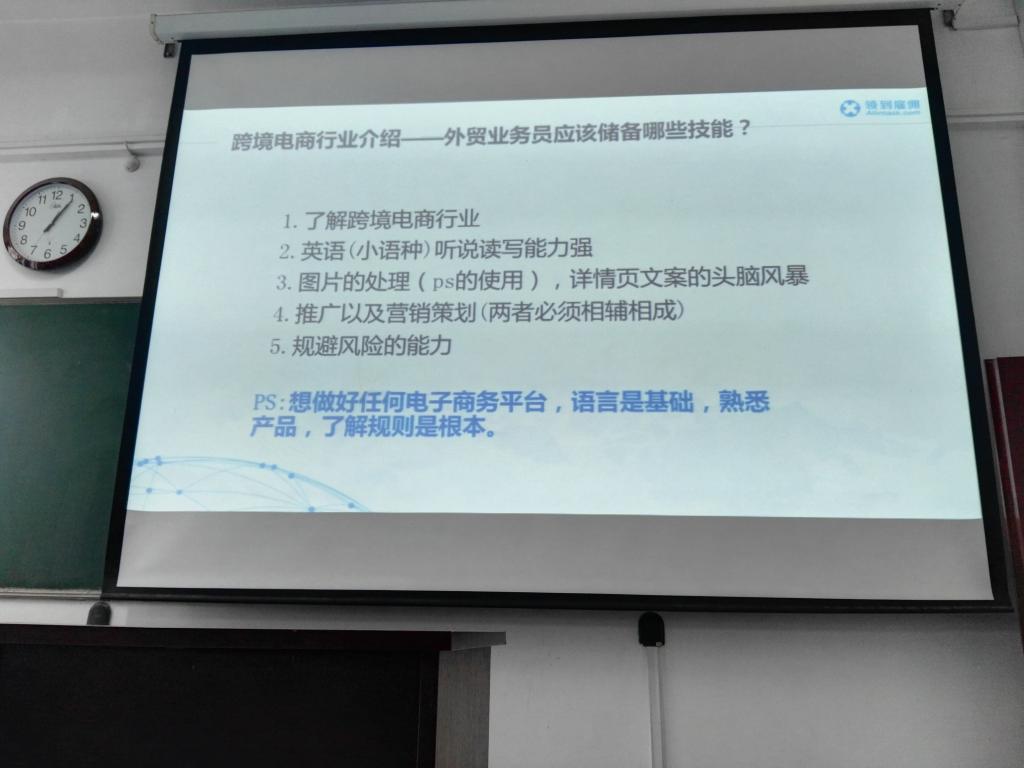 窦老师毕业于武汉经贸公司电子商务专业,多年来在跨境电商领域奋斗多年,有较好的工作经验,他从传统电商和跨境电商的差别讲起,向同学们讲解了跨境电商在国际化不断强化的社会形势下,特别是中国在推动一带一路中初见成效的美好前景下,发展跨境电商以及在此行业的发展将是老员工就业较好的选择,同时,窦老师也讲了作为涉外贸易员的发展途径和工作环境,作为外贸业务所需要的技能等,希望有志青年选择电商行业,将来做出一番工作业绩。