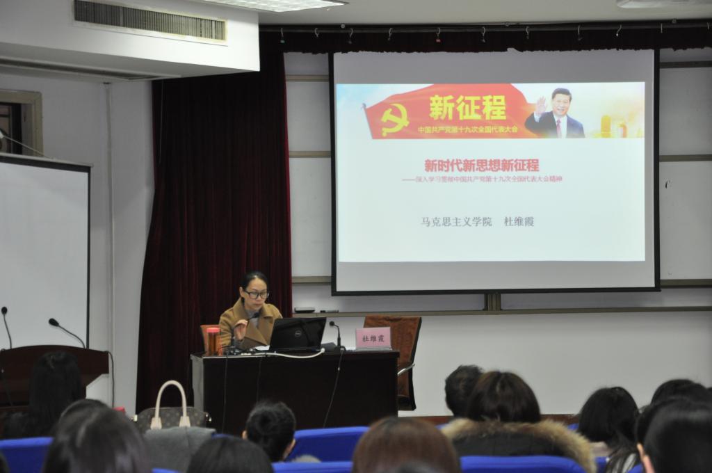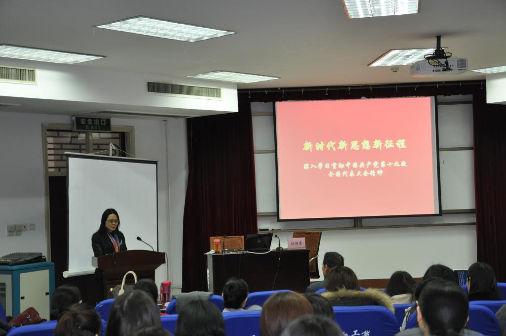 2017年12月8日,365在线体育投注官网学习贯彻党的十九大精神宣讲团骨干教师杜维霞博士,在4#311学术报告厅为公司师生做了一场题为“新时代新思想新征程”的宣讲报告。公司全体领导、教职工和员工党员聆听了报告。