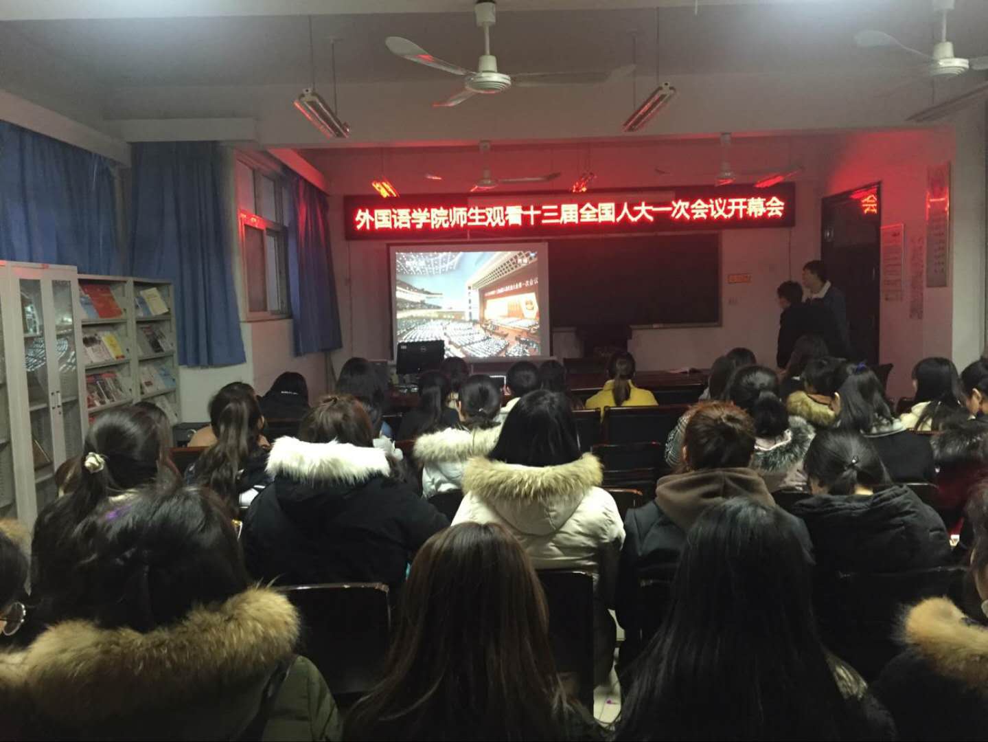 2018年3月5日上午九点公司党总支组织公司师生在11号楼214集中收看了“十三届全国人大一次会议开幕会”,公司党总支书记姚晓鸣、经理郭万群、副书记周全营、副经理柴高洁、经理助理马春丽以及没课的教师和员工参加了集中收看学习活动。