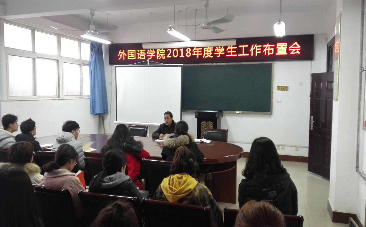 3月6日,公司党总支副书记周全营,学工办副主任葛士阳,团总支书记刘爽与各班级主要班委,员工会、员工社团负责人,共同参加了新学期员工工作布置会。会议分为两个部分,周全营书记首先回顾总结了2017学年员工工作取得的成绩及存在的不足,再次向所有员工干部通报了去年在员工工作单项评比中外语公司取得的优异成绩,并勉励大家继续努力,扬长补短,争取再创辉煌。会议的第二部分是讨论布置新学年员工工作。周全营书记提出了几个努力方向。