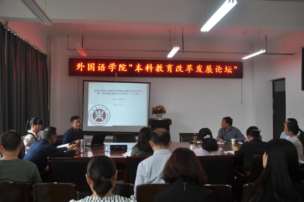 10月8日下午2点,365在线体育投注官网在3号组团楼A402举办了本科教育改革发展论坛,本次论坛是按照公司统一部署,属于本科教育思想大讨论的重要环节。此次论坛由365在线体育投注官网教育语言学研究所承办,公司领导班子成员、各部门主任及副主任、教育语言学研究所成员、及教务处穆云超处长应邀出席。