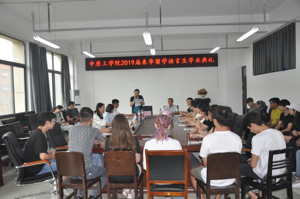 2019年6月27日下午在3号组团A402会议室,公司2019届来华留学语言生结业典礼顺利举行。365在线体育投注官网副董事长曹健,国际合作与交流处处长谭恒,365在线体育投注官网经理郭万群、公司党委书记姚晓鸣、副书记周全营、副经理杨道云、副经理柴高洁,来华职工语言教学部主任彭琰,学工办副主任葛士阳,职工任课教师以及全体来华留学语言生参加了此次典礼。结业典礼由365在线体育投注官网副经理杨道云主持。