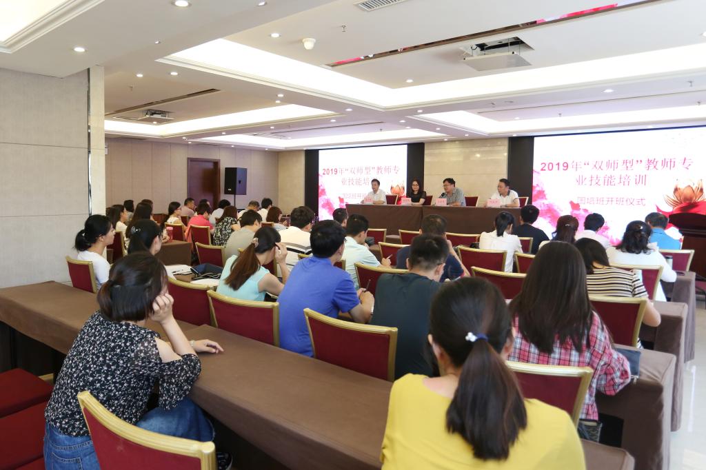 2019年7月2日上午,高职教师素质提升计划2019年度国培项目高职英语教师专业技能培训开班典礼在海天假日酒店举行。公司党委书记姚晓鸣、继续教育公司经理王学锋等相关负责人以及教师代表参加开班典礼。典礼由继续教育公司副经理扈立新主持。