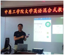 首先,黄河科技公司公共外语教学部常务副主任娄欣生以“‘员工中心’理念下的大学英语教学改革”为题做了专题报告。在报告中,他通过分析大学英语课程性质和地位、大学英语教学现状以及大学英语教学困境产生的原因,指出大学英语教学改革势在必行,大学英语教学的出路就是要回归“员工中心”。接着,娄主任用黄河科技公司的成功试点案例为我们详细介绍了他们具体的教学改革设计方案,工作实施步骤以及所获得的骄人的改革成效。
