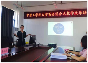 接着,黄河科技公司教学改革团队的陈春芳老师声情并茂地为我们讲述了基于混合式教学的大学英语教学改革的过程。她提到要以员工为中心准备教学,要以成果为导向开展教学,以及要促员工成长引领学习。她以Chapter Three---Tense为例为我们详细阐述了如何开展大学英语混合式教学,为我们提供了很好的教学范例。