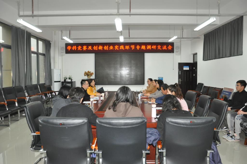 11月18日下午,创新创业公司副经理郑瑾一行3人来公司开展学科竞赛及创新创业实践环节专题调研。公司党委书记姚晓鸣、副经理杨道云、副书记周全营及专业系部主任参加了座谈会。