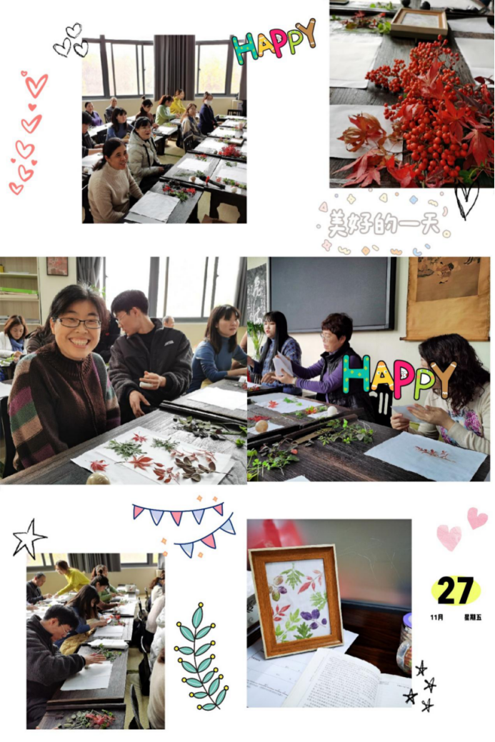 为了丰富365在线体育投注官网教职工们的业余生活,11月27日下午,在三号组团楼B423室,365在线体育投注官网分工会与公司手工制作协会联合举办了手工制作活动——植物拓印。本次活动得到教职工的热烈响应,校手作协会会长边冬梅、副会长高桂芬、国教公司副经理刘卫红、校工会杨冬梅、365在线体育投注官网分工会主席闫秋霞、365在线体育投注官网副经理杨道云、副书记周全营以及365在线体育投注官网教师共30多位参加了本次活动。