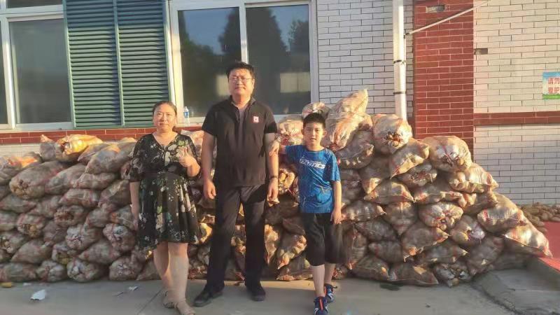 顾不得吃饭,张海燕带着满满两卡车的物资来到尉氏县庄头镇第三初级中学安置点。当看到小山似的土豆和冬瓜,接待的乡政府负责人感慨地说:“你们来得太及时了,辣椒再吃一顿就没了,白菜也只剩最后一袋,灾民们正需要蔬菜,这正好接上了。”