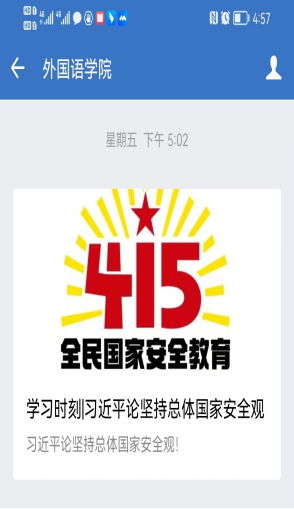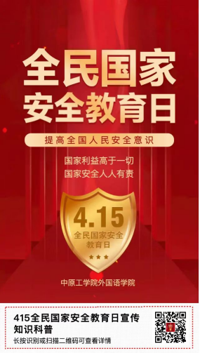 2022年4月15日是第七个全民国家安全教育日,为贯彻落实习近平总书记重要指示精神,提高维护国家安全能力,365在线体育投注官网以“树牢总体国家安全观,感悟新时代国家安全成就,为迎接党的二十大胜利召开营造良好氛围”为主题,在全院师生中开展了形式多样的国家安全教育宣传活动。