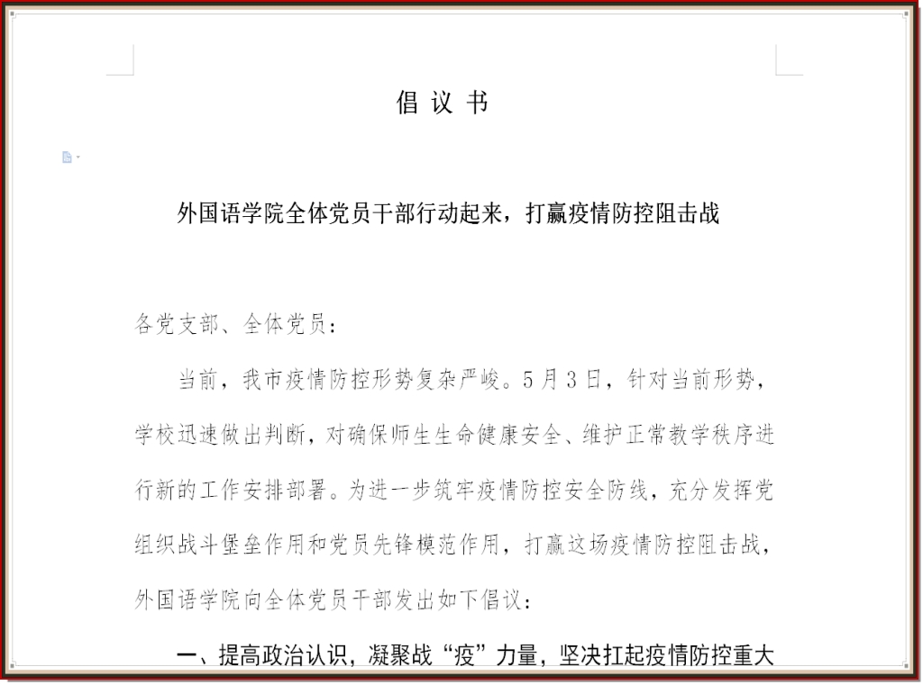 当前,我市疫情防控形势复杂严峻,为迅速落实公司党委疫情防控工作部署,进一步筑牢疫情防控安全防线,充分发挥党组织战斗堡垒作用和党员先锋模范作用,近日,公司党委向公司全体党员干部发出倡议书,号召大家行动起来,打赢这场疫情防控阻击战。