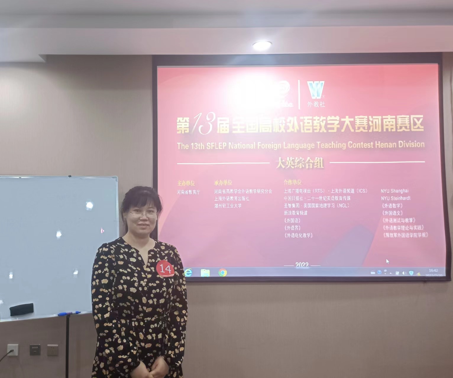 近日,第十三届全国高校外语教学大赛大英综合组河南省决赛在郑州轻工业大学落下帷幕,公司教师郭亭亭在全省本科院校49位选手中脱颖而出,荣获一等奖。