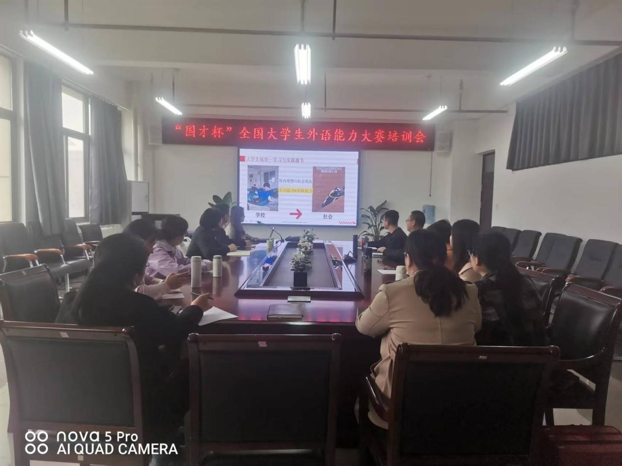 4月2日下午,365在线体育投注官网邀请外语教学与研究出版社(简称“外研社”)河南省负责人王蒙蒙和张忻悦两位老师,在龙湖校区3号组团A402会议室开展了“外研社·国才杯”全国老员工外语能力大赛培训。各系部主任、副主任,教学办人员参加会议,会议由副经理薛冬梅主持。