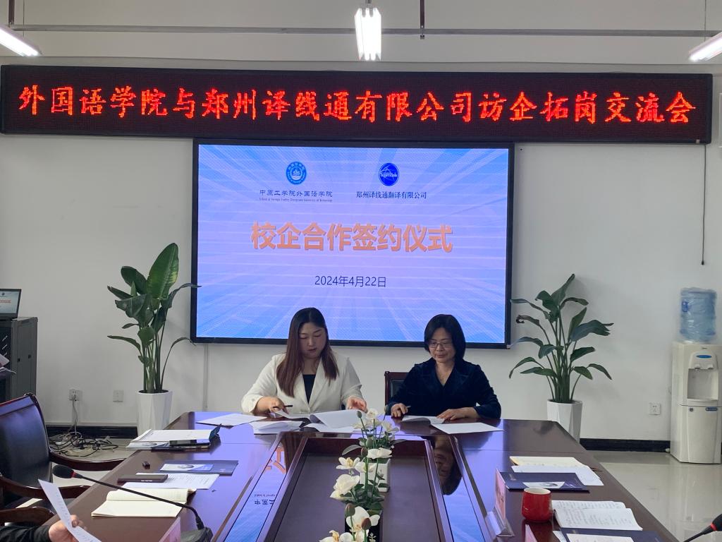 为深入贯彻落实教育部关于2024届高校毕业生春季促就业攻坚行动的工作部署,增进校企交流,开拓就业岗位,提升就业质量,4月22日,郑州译线通翻译有限公司校企合作事业部经理鲍俐俐、专员邢亚娟到公司开展访企拓岗交流会议,洽谈校企合作事宜。公司全体班子成员,系部主任及教师代表参加交流座谈,公司经理姚晓鸣主持。