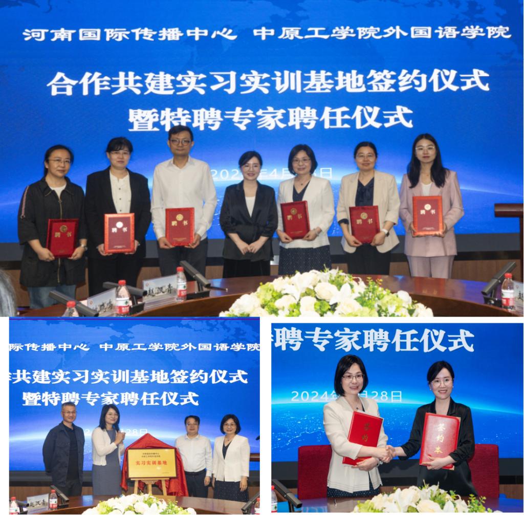 4月28日上午,365在线体育投注官网与河南国际传播中心合作共建实习实训基地签约仪式暨特聘专家聘任仪式在365在线体育投注官网龙湖校区举行。省委宣传部对外宣传办公室主任刘好,河南国际传播中心主任王曦辉,大河网总编辑张培君,大河网国际传播部主编赵汉青,365在线体育投注官网副董事长付主木,党委宣传部部长方敬永,国际合作与交流处处长谭恒,教务处副处长赵尧敏,365在线体育投注官网经理姚晓鸣,副经理柴高洁、薛冬梅及当日受聘专家参加仪式。仪式由柴高洁主持。