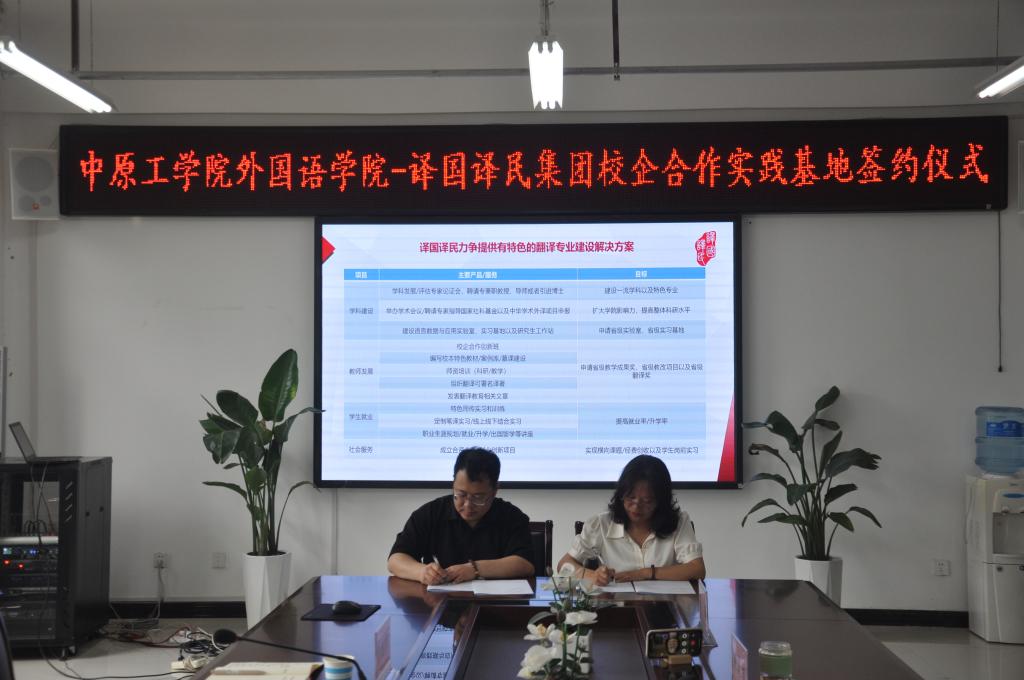 5月20日下午,公司与译国译民集团签约共建英语专业和翻译硕士专业实习基地,双方将建立长期合作关系,加强交流合作,共同推进校企合作的新篇章。签约仪式在公司402会议室举行。译国译民集团华北区总经理王晓飞、图书部经理曾庆萍、公司领导班子、教师代表出席了本次签约仪式。签约仪式由公司副经理柴高洁主持。