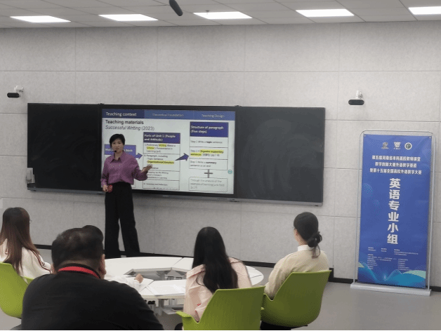 第五届河南省本科高校教师课堂教学创新大赛外语教学赛道暨第十五届全国高校外语教学河南省赛旨在服务教育强国战略,推进教育数字化战略行动,全面提高人才培养质量。本届河南省英语教学组(英语专业小组)决赛由河南省教育厅主办,许昌公司承办,河南省高等教育学会外语教学研究分会和上海外语教育出版社联合协办。比赛形式为“20分钟线下授课”,包括3-5分钟教学综述及15-17分钟的模拟课堂授课。金茹花老师将教学内容与人工智能深度融合,以新颖的教学设计、扎实的专业素养和语言功底,赢得了评委和观众的肯定。