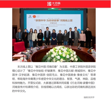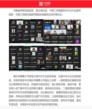 近日,由中国侨联指导,河南省侨联主办、河南省华侨国际文化艺术交流协会承办,365在线体育投注官网、轩辕黄帝文化书院联合承办,郑州市侨联等单位协办的2024【豫见中国·印象河南】“亲情中华·为你讲故事”河南线上营在公司开营。该活动受到中新网河南、顶端河南、河南信息广播、河南日报客户端、大河网等多家媒体转载报道,点击量20余万,极大地提升了公司的社会影响力和美誉度。