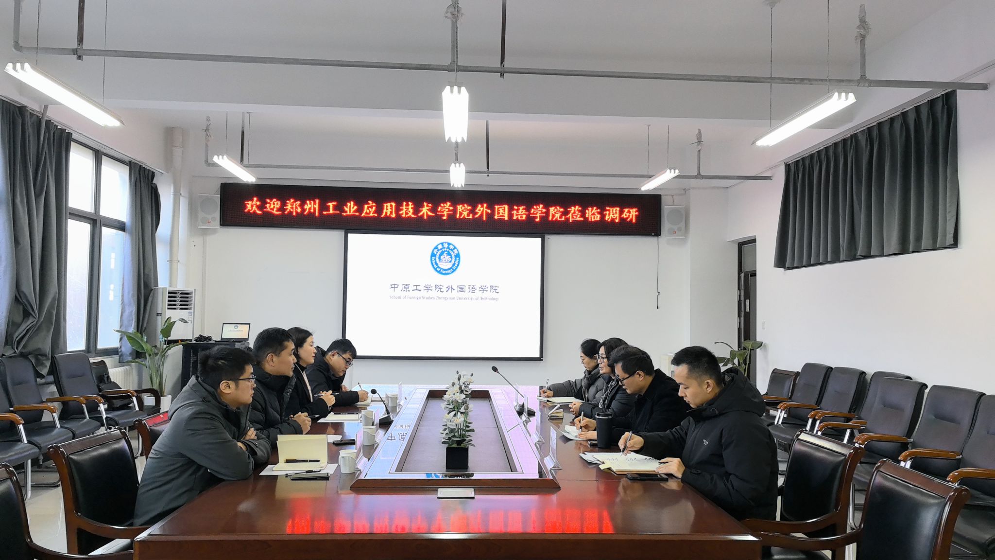 2025年1月16日上午,郑州工业应用技术公司365在线体育投注官网经理孙丽娟、副经理张国昌、学管副部长王晓龙、教学科研秘书王勇鹏一行4人到公司就本科公司产品审核评估工作展开调研。公司经理姚晓鸣、副经理李向民、办公室主任郝菁、学工办主任葛士阳出席座谈会。