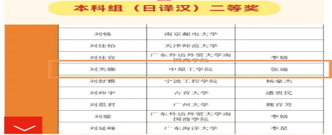 2023年11月29日,经过紧张激烈的选拔与评比,第六届“人民中国杯”日语国际翻译大赛圆满落幕。公司日语201班员工刘美娜同学在本次大赛中斩获本科组(日译汉)二等奖,张瑜老师荣获“优秀指导教师”称号。