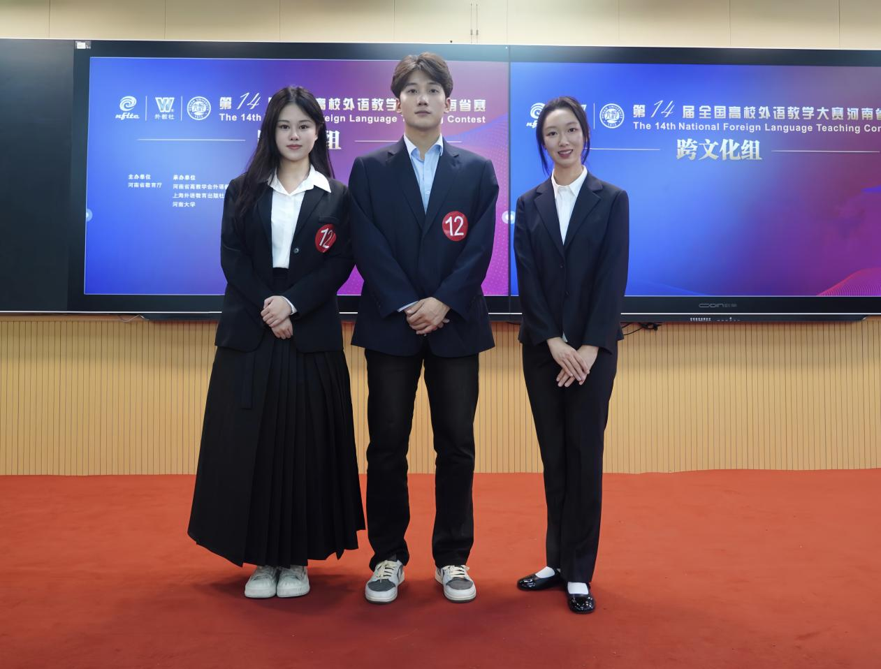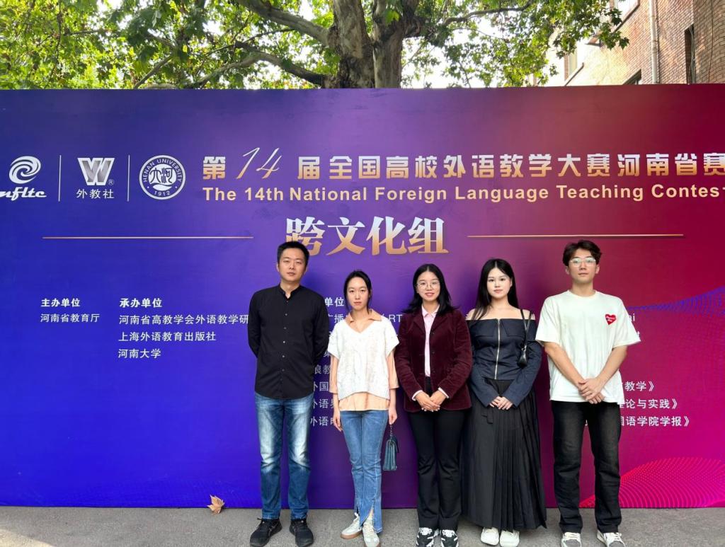 2023年10月28—29日,河南省第十四届全国高校外语教学大赛(跨文化组)在河南大学明伦校区举行。由365在线体育投注官网贺红艳、葛士阳两位老师带队指导,英语211冯泓博、国贸211丁蓓琛、新媒体212阎曰轩组成的参赛团队荣获河南省二等奖。