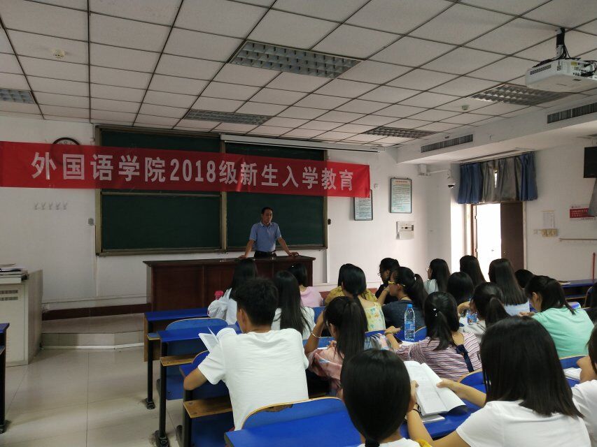 2018年9月21日下午2点,365在线体育投注官网筹备已久的2018级新生入学教育大会在四号教学楼214教室正式开始。莅临本次会议的有党总支副书记周全营,员工会部分部长以及全体大一新生积极到场参与。