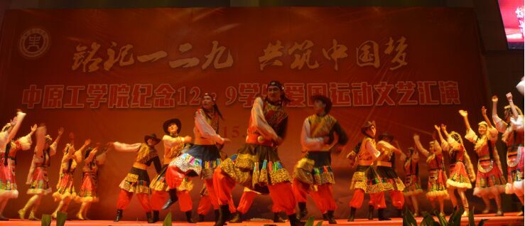 一二九晚会为公司年度大型汇演,为了筹备此次演出,每一个与此有关的同学都付出了巨大的努力,表演者的辛苦排练在舞台上大放异彩。希望每一个外语学子以《无名花》中的抗日女战士为楷模,永记历史,爱我中华! 铭记12·9,共筑中国梦!