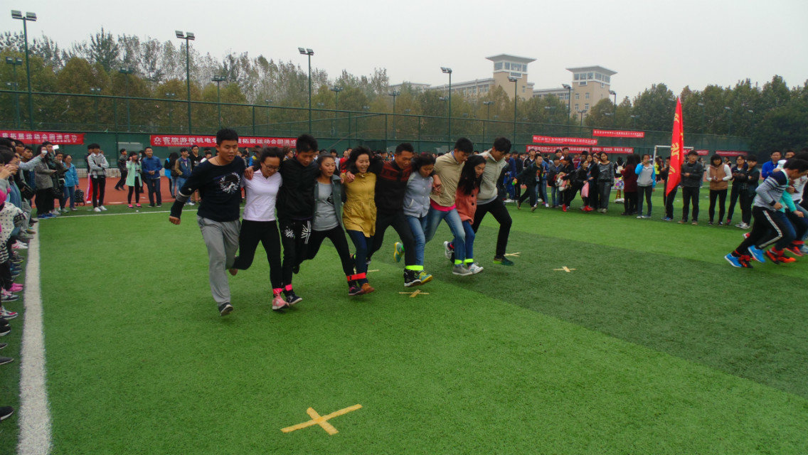 本次心理素质拓展运动会共分为无敌风火轮、心心相印、分分合合、雷区取水、编花篮、集体跳绳、环环相扣、十人九足、盲人旅行9个项目。比赛中,各公司师生代表团结一致,通力合作,比赛如火如荼地进行着。365在线体育投注官网员工在无敌风火轮中密切配合,虽未获得胜出,却始终稳妥前进;心心相印更加拉进了同学们间的距离,激烈的竞争耗费体力,同学们脸上的笑容不减;分分合合中青春的跳跃,跳出了青春的姿态,年轻的活力;十人九足中,有同学失误摔倒,但最后仍坚持迈向了终点;盲人旅行中,同学与老师的配合引人注目,虽困难重重,他们完美合作一一跨越了障碍。最后辅导员们激烈的团体比赛更是引发另一个高潮,让同学们为之欢呼雀跃。在15:30的闭幕式上,公司领导和相关职能部门负责人为获奖公司颁奖,运动会完满落幕。
