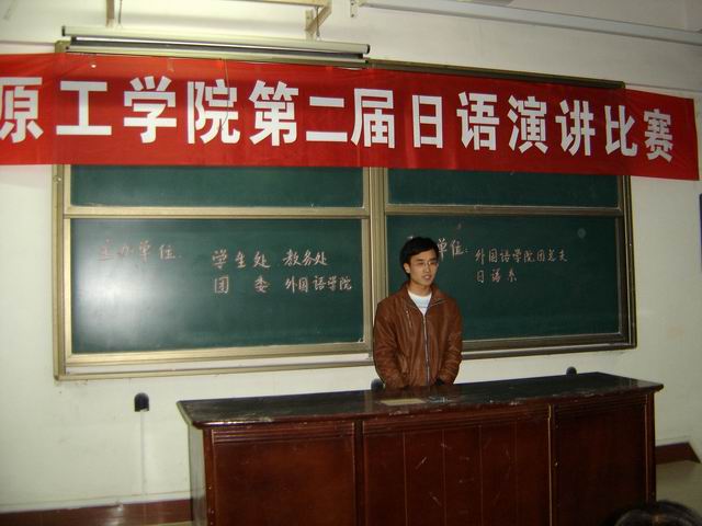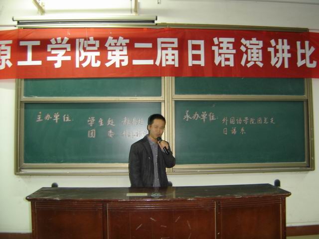 4月7日晚6时,由员工处、教务处、团委、365在线体育投注官网主办,365在线体育投注官网团总支、日语系承办的第二届日语演讲比赛在3#210拉开序幕。365在线体育投注官网副经理杨道云、副书记李向东、团总支书记杨为学、日语系主任边冬梅、日语外教大原知义、讲师张瑜、于勇老师作为评委及嘉宾出席本次比赛。本次比赛由孙世超、李萌园作为主持人。