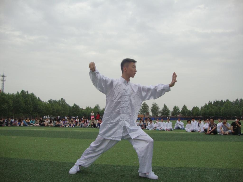 下午四点钟,365在线体育投注官网2013级全体员工齐聚南苑操场。伴随着太极拳音乐,首先进行的是个人比赛,来自365在线体育投注官网太极拳表演队的30名同学,着装统一,精气神十足,经过认真准备,激烈角逐,英语132班李宇豪同学荣获了个人比赛的冠军,二等奖分别由日语132邢婉婉,汉语131赵向荣,汉语132赵天魁获得,三等奖分别由汉语131李雯雯,英语131薛雯元,汉语131邓粲士,日语132袁荣欢,英语132张雄飞,日语132潘寸获得。另有五人获得了优秀奖。在随后的班级团体赛中,各班认真组织,表现积极,汉语131班为最终摘取最佳班级。