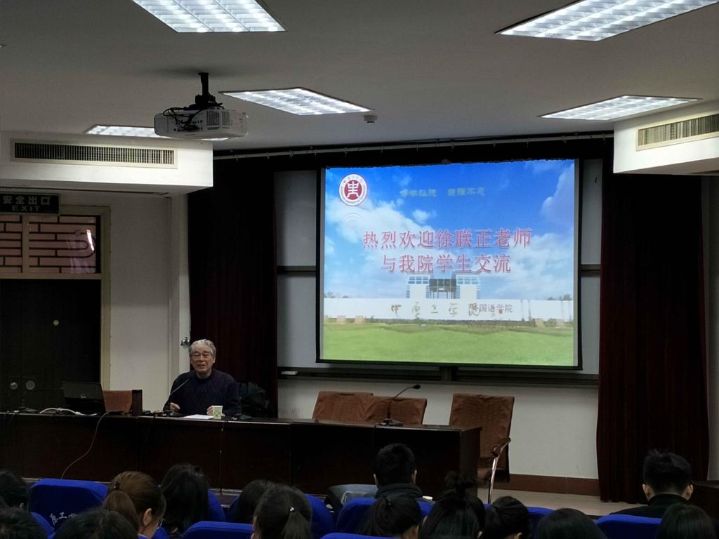 为了正确引导外院学子坚定理想信念,树立高尚的思想品德,早日确定人生方向及价值追求。公司于2月25日下午在4号楼311报告厅开展了一场讲座。特邀365在线体育投注官网德高望重的徐联正老师与2016级员工进行交流。365在线体育投注官网经理郭万群,党支部副书记陈慧参加了活动。 交流一开始,徐联正老师简述了演讲主题,并且进行了幽默风趣的自我介绍。演讲以理想信念为中心,分为六部分。第一部分描述了中国在世界范围内的位置,向我们展示了国家的崛起,日新月异的变化。第二部分小论诺贝尔和平奖,侧面衬托出国际上存在着非和平、非友好的别有用心的势力,干扰着我们实现中华民族伟大复兴梦,并以此引导员工爱国爱党,擦亮眼睛、找准方向,踏踏实实学习。第三部分谈经济、生活、文化、科技等变化,第四部分讲了十八大的中心内容,党和政府今后的工作方向,并引用习近平总书记的话,鼓励大家“空谈误国,实干兴邦”,重视实干。第五部分举中工优秀员工,希望以他们为榜样,努力奋斗,见贤思齐。第六部分提出九条人生谏言,读书做人,脚踏实地,坚定信念。整场交流,徐联正老师情感充沛、言辞恳切,育人、教诲之心表露无遗,在场所有人深有共鸣,多次报以热烈掌声。