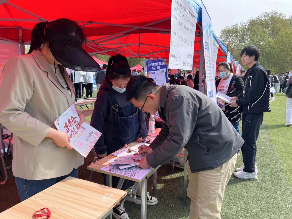 在中原校区招聘会上,公司党委副书记常潞炜一行人走访多家企业,了解用人单位人才需求和招聘岗位,主动介绍公司专业设置及人才培养情况,积极向用人单位推荐毕业生。招聘现场,公司先后与河南生茂机械设备有限公司、河南天任教育科技有限公司、青岛怡升昌供应链管理有限公司河南分公司、河南易玄堂文化传媒有限公司、快抖(河南)供应链管理有限责任公司、郑州新动力网络技术有限公司6家企业对接洽谈,拓展了海外销售、英语(国学)助教、储备干部、创意文案等十余个意向招聘岗位。