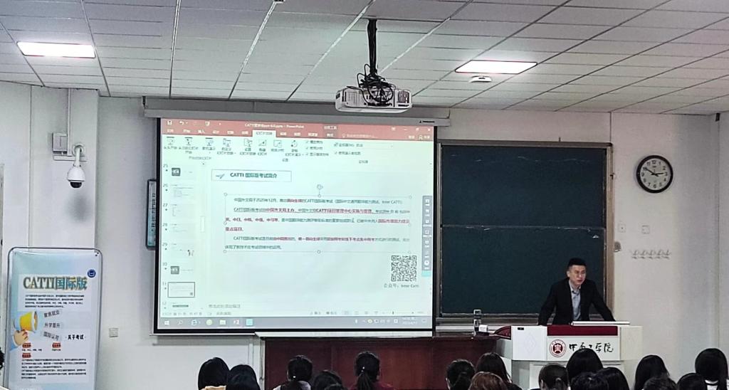 交流会上,郑州译线通翻译有限公司专业讲师刘延昊详细介绍了国际中文通用翻译能力测试(CATTI国际版)内容和基本要求,鼓励员工在校期间,有针对性开展外语综合能力及翻译实务训练,不断提升专业素养,为未来求职就业做好知识储备。河南汇品跨境电商发展有限公司崔权威结合公司业务开展情况,分享了跨境电商行业发展现状和人才需求形势;提醒同学们在学习专业课的同时,明确未来职业发展方向,并持续关注行业发展,开展有针对性地技能训练,不断提升自己的求职能力。
