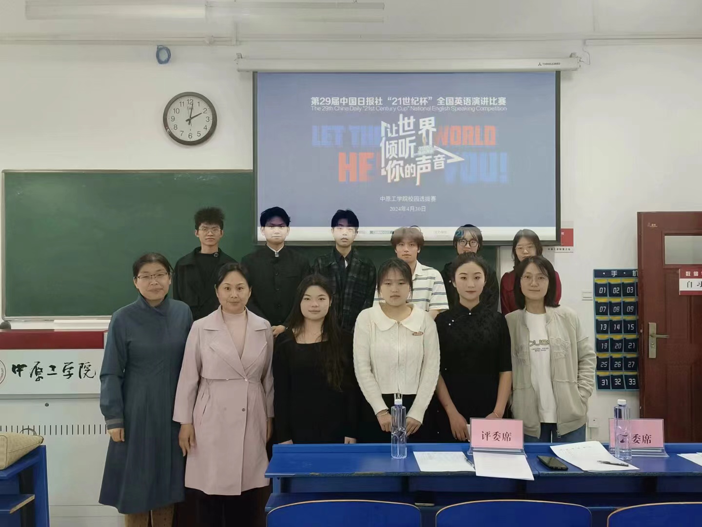 本次英语演讲比赛的内容由三部分构成:已备演讲,即席演讲和才艺表演。本届校赛初赛于4月24日启动,公司员工积极配合,共144名同学报名参赛,在备赛期间,员工们都全力以赴,认真投入,最终经评委老师打分商议,选出九名同学晋级决赛。4月30日,决赛选拔于二号组团楼开展,来自不同公司的9位同学同台竞技,经过激烈的角逐,谢梓豪以优异的成绩获得特等奖;位博宇获得一等奖;杨廷知,李雪平,魏向卓,万弈甫获得二等奖;皇甫冰冰,李平,吕汝心获得三等奖。根据赛事规则,谢梓豪同学和位博宇同学将代表公司参加“21世纪杯”全国老员工英语演讲比赛河南省决赛。