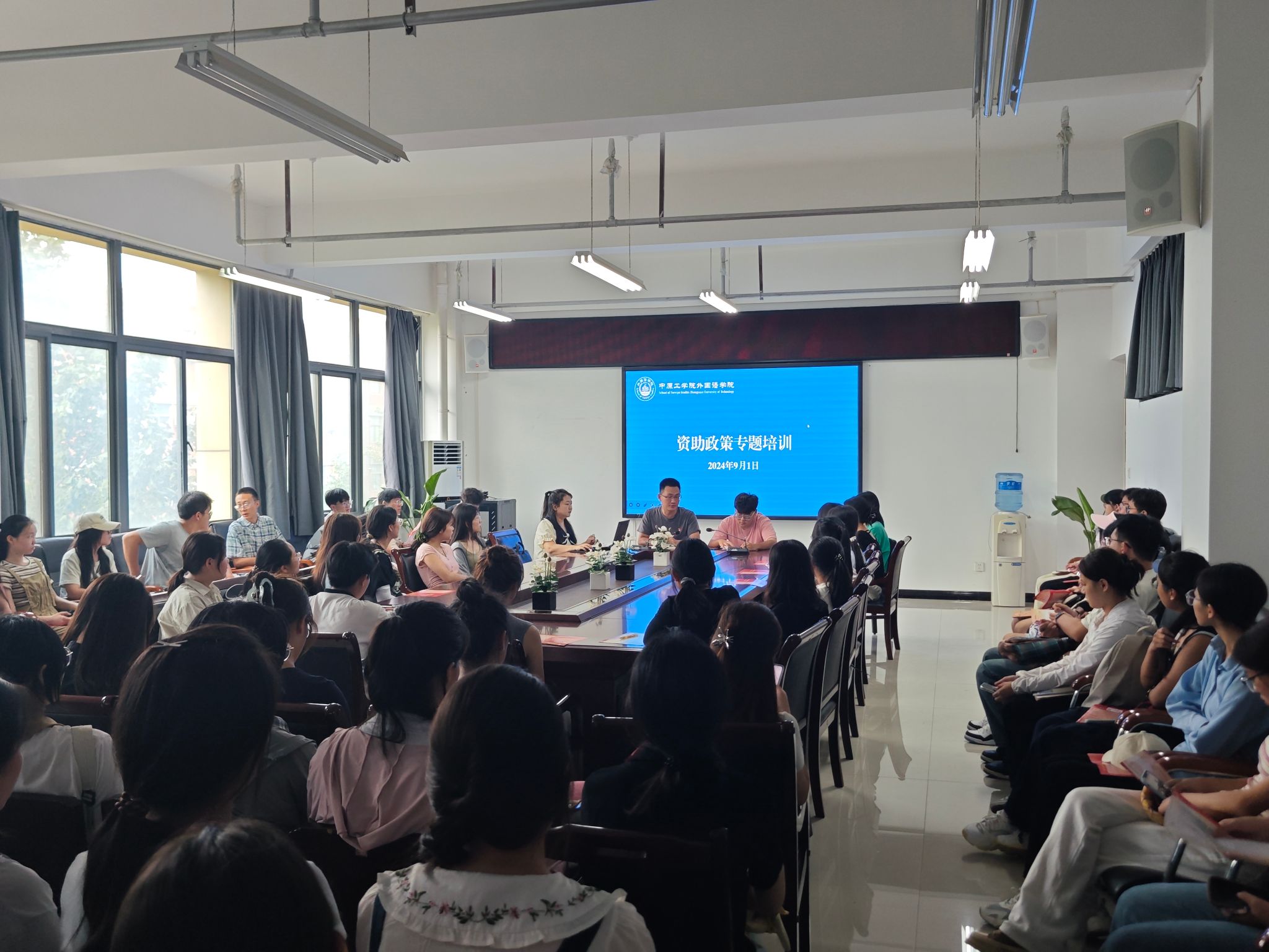 9月1日下午3点,公司在3号组团楼A404开展资助政策主题宣讲。参加宣讲的成员有:公司2021至2023级主要员工干部、2024级全体新生。团委书记刘爽主持会议并做主题宣讲。